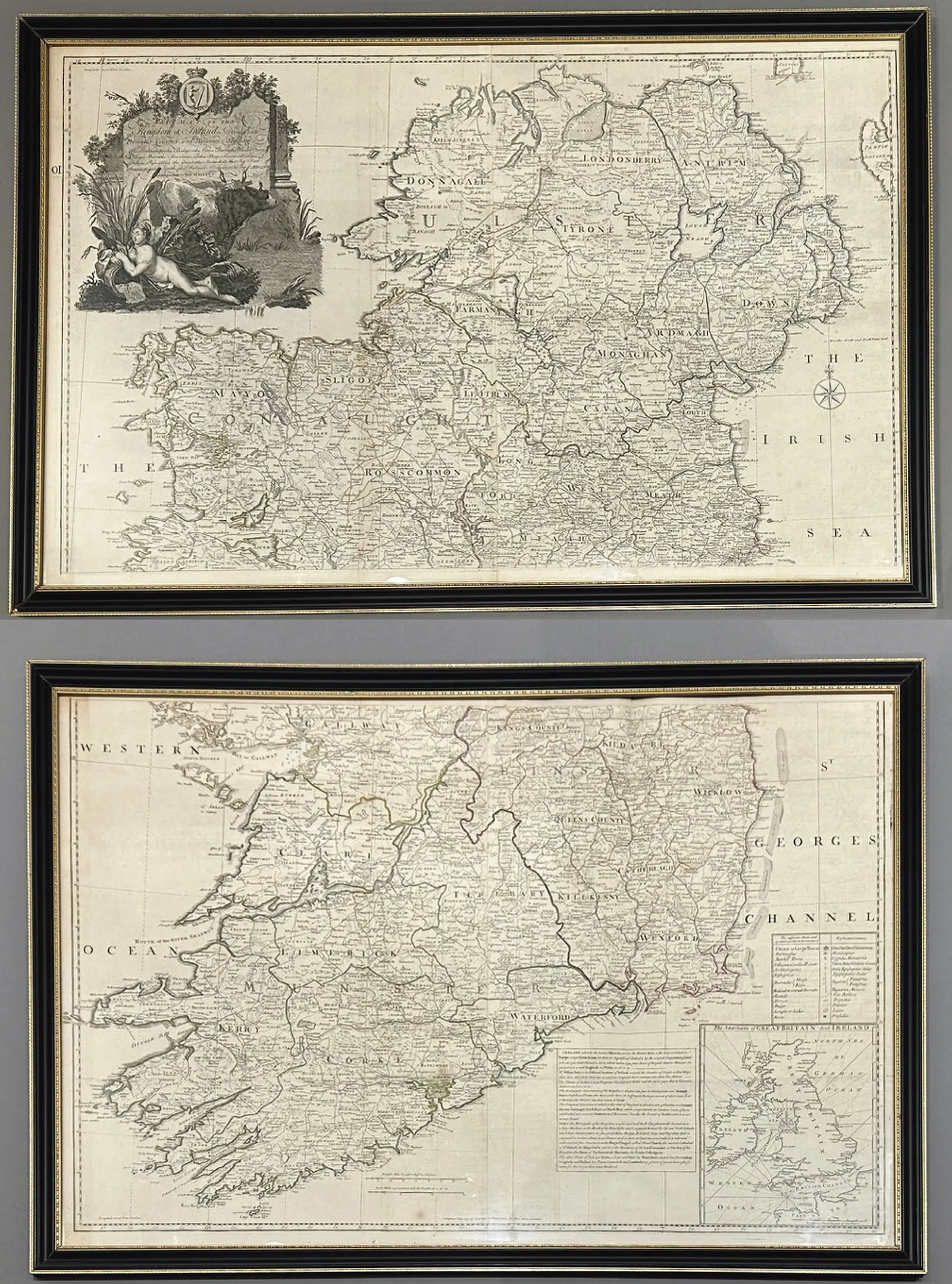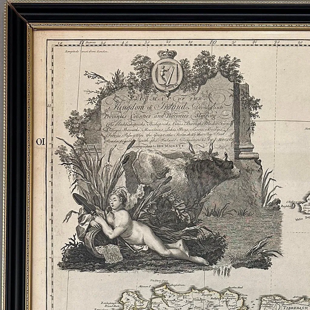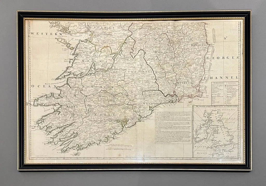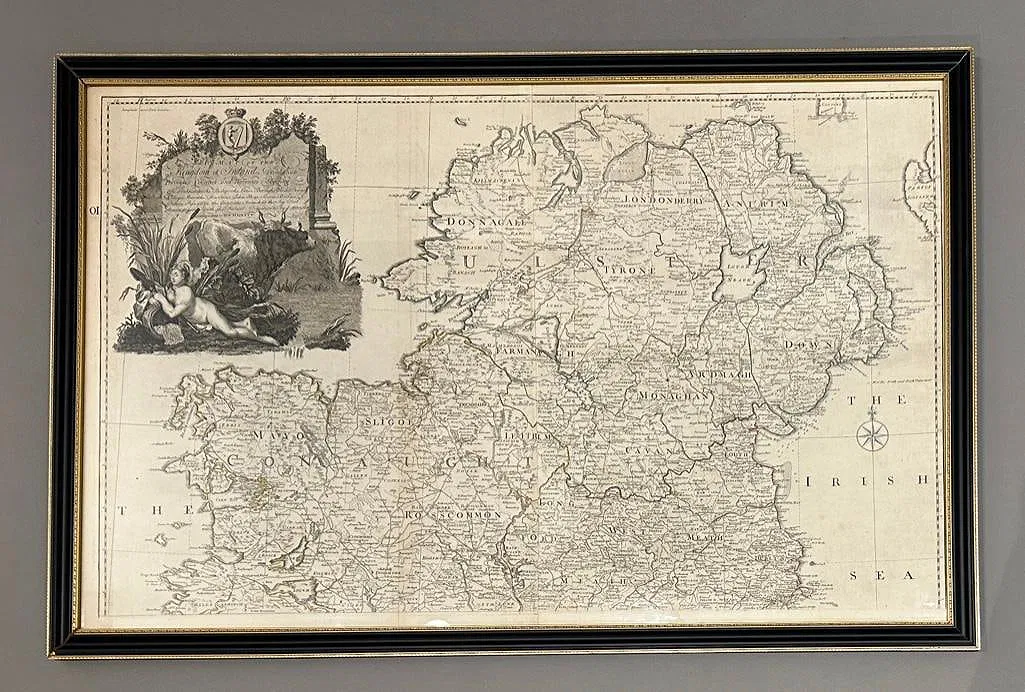 Framed Antique Map of Ireland on two sheets by John Rocque, 1790, pub. Robert Sayer.